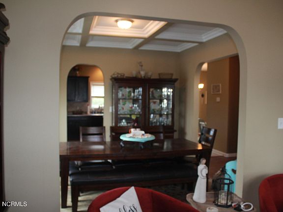 This home is spectacular! Step into this 2440 heated square feet beauty and you have a formal living room/office/bonus room to the left. Walk through this room into the formal dining room with coffered ceilings and picture you and your family or guests enjoying dinner here. Through the dining room into the Large kitchen you'll see chocolate colored staggered cabinetry, stainless steel appliances, a roomy pantry, a small island, and a space for a small dining room table. The kitchen is open to the cozy family room complete with a beautiful fireplace with a ceramic tile surround. You can step out the sliding glass doors to the completely privacy fenced back yard with a patio for entertaining. Upstairs you will find 4 full bedrooms AND a multi-use bonus room. The master bedroom is Large and includes vaulted ceilings, and a Fabulous on-suite with dual sinks, soaking tub, walk in shower, and a HUGE closet. Add a 2 car garage in a community that has a clubhouse and a pool and is 5 minutes to the side gate of Camp Lejeune, what more do you need? Hurry up and beat the crowd!