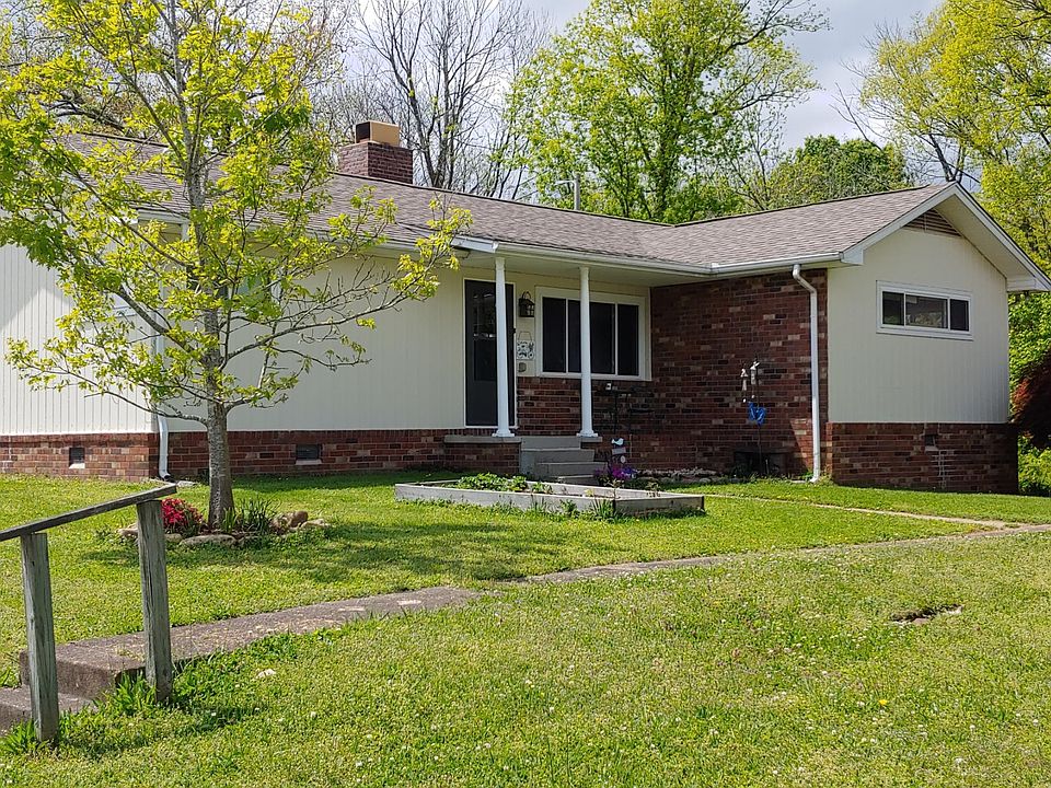 One level home with hardwood flooring throughout except kitchen and updated baths. Split bedroom plan with master on one end. Living room with fireplace and a large family room. Carport .Two story storage shed in the back yard.