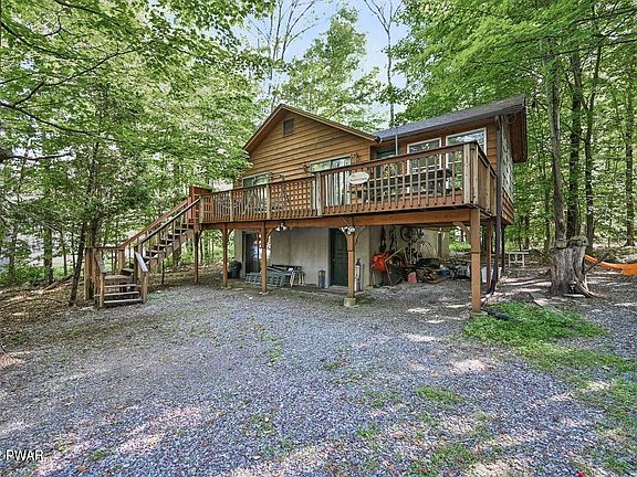 Check out this beautifully updated 4 bedroom, 2-bathroom home on a private, wooded lot in a four-season amenity-filled community in The Northern Poconos, just two hours from the NY, NJ, and Philadelphia areas. The upper level has an open floor plan, new laminate flooring, a fireplace, an updated kitchen with granite counter tops. Large Sunroom with access to the large front deck. The lower level has a large recreation room with pool table ready for fun! Furniture included!, Beds Description: Primary1st, Beds Description: 2+BedL, Baths: 1 Bath Level 1, Baths: 1 Bath Level L, Beds Description: 2+Bed1st