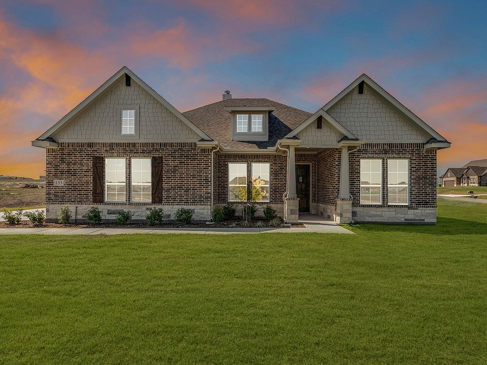 Upon entering the home off the front porch, you’re welcomed by an inviting foyer. Immediately to the left is a hallway with a bedroom, walk-in closet and full bathroom, as well as a linen closet. Across the foyer is a flex room, perfect for a home office, formal dining room or whatever need your family has for the space. Past the foyer is the family entry, with storage space and mud bench, which leads to the laundry room and two or three car attached garage. Adjacent to the family room is a gourmet kitchen, equipped with a walk-in pantry, ample counter space and an oversized island. The remainder of this one-story floor plan is just off the living space. A hall leads to two bedrooms with walk-in closets, another linen closet and a shared full bathroom. The back corner of the home offers privacy for the owner’s suite, featuring a massive walk-in closet and bathroom with a dual-sink vanity, standalone soaking tub and glass-enclosed shower.