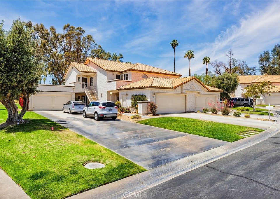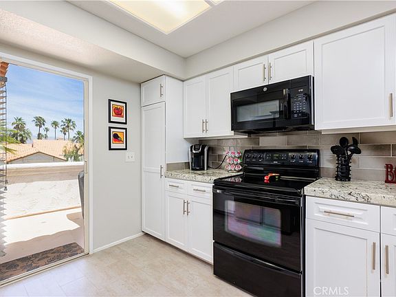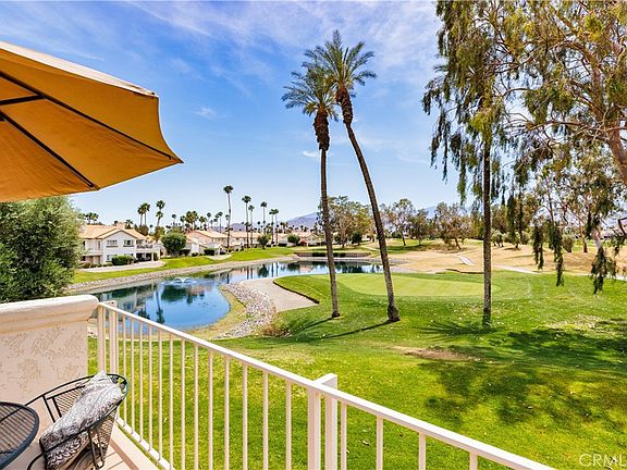 Welcome to Desert Falls Country Club, the club is listed as one of the top 10 courses by the SCPGA and received a four-star rating from Golf Digest's "Best Places to Play". This north/south facing upper condo benefits from views of the premier 13th water hole. Sweeping views of the golf course and San Jacinto mountains are visible from both the rear patio and master bedroom. Once inside you will fall in love. The fully remodeled kitchen has granite counters, new built-in microwave, double basin farm sink, new refrigerator and breakfast bar. Off the kitchen is a second patio with a gas barbecue and views of the mountains of Joshua Tree National Park. The great master suite has double mirrored wardrobe doors and its own private bathroom with dual sinks, shower and oversized tub with glass enclosure. The good-sized secondary bedroom has beveled glass wardrobe doors and the floor-plan has the ability to turn the second bedroom into an additional ensuite bedroom. The hall bathroom has a glass shower enclosure. The formal dining room features a mirrored wall and ceiling fan. The large living room with dry bar features a stacked stone fireplace. Additional highlights include an indoor laundry room with built-in linen closets, vaulted ceilings throughout and beautiful furnishings which are included. There is an attached 2 car garage. While here you will enjoy 22 pools offering an option of fresh and saltwater. Living in the 24-hour guard gated community you'll have access to a state-of-the-art fitness center, tennis courts, pickle-ball courts and clubhouse. Adjacent to the beautiful San Jacinto mountains the country club's mid valley location has convenient access to fine dining and ample shopping. Presently the city is allowing Airbnb rentals with permit.