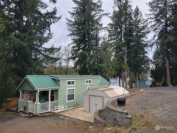 Find peace in nature without leaving home! 35 x 12 cabin nestled in the trees overlooking beautiful Mayfield Lake. Lakeside access via trail from the backyard. Perfect for kayaking. 1 bed + loft, 1 bath. Newly remodeled bathroom with W/D hookups. Brand new sink, vanity, toilet, soaking tub and rainfall shower head. Bedroom can accommodate a king sized bed. Spacious loft for storage or guests! Partially enclosed porch with dog/cat door easily accommodates pets. RV parking & hookups, plus shed which could also be used for laundry and/or half bath utilizing RV hookups. All appliances stay - seller also willing to negotiate kayaks, patio furniture, & TVs. Huge Airbnb/VRBO potential. Schedule a showing today!
