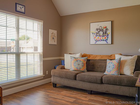 Come see this beautiful home located in an amazing neighborhood, backing up to trails and is just minutes to the beautiful Skiatook Lake and city park! This split bedroom floorplan features 3 bedrooms, 2 bathrooms, and an office on a large corner lot with a privacy fence! Luxurious master contains a walk in closet and private bathroom, with a newly updated steam shower! The granite counter topped kitchen has tons of cabinets and opens to the living room, vaulted ceilings, and new wood floors and trim throughout. New stainless steel appliances and refrigerator to remain with home as well! Playhouse will for sure be going. Come see for yourself and make this house, your home! Owner/Agent