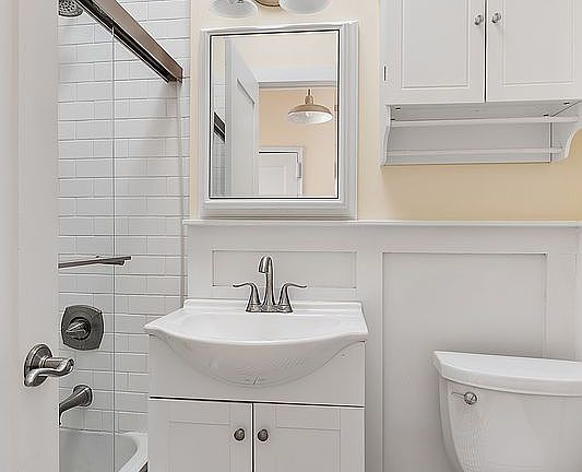 The bright and airy living room provides ample space for entertaining and a dining table. The bedroom allows for up to a king-sized mattress, large dresser and night stands while also offering a large walk-in closet. Both the kitchen and bathroom were recently renovated and are in great condition.