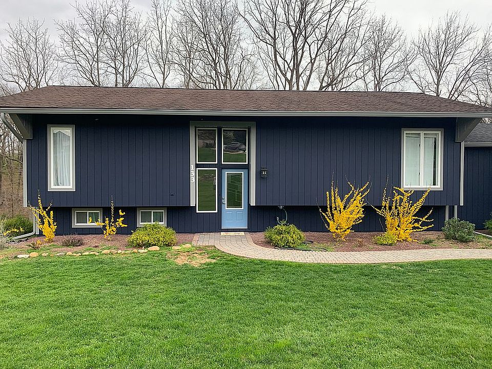 Spacious Contemporary bi-level in Nazareth School District on a peaceful 1.7 acre lot with wooded border & small stream, picnic area. This is not your typical house, it has been updated and improved through out the home, no detail has been overlooked. Landscaped with large deck overlooking woods with a stream beyond. As you enter the home to the upper level there is a spacious living area & dining area with double doors to large rear deck. Modern kitchen includes refrigerator, electric flat top range, microwave hood, dishwasher, double bowl sink and ceiling fan. There are two bed rooms upstairs with large walk in closet area and fireplace. Full bath on this level and a loft looking down to the spa room below. The lower level has a rec room with wood coal stove and sliding doors to the rear patio and yard. The laundry is on this level and two more bedrooms plus a full bath. There is an over sized two car garage with a gym and sauna, call today for your private tour.