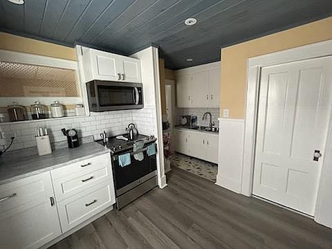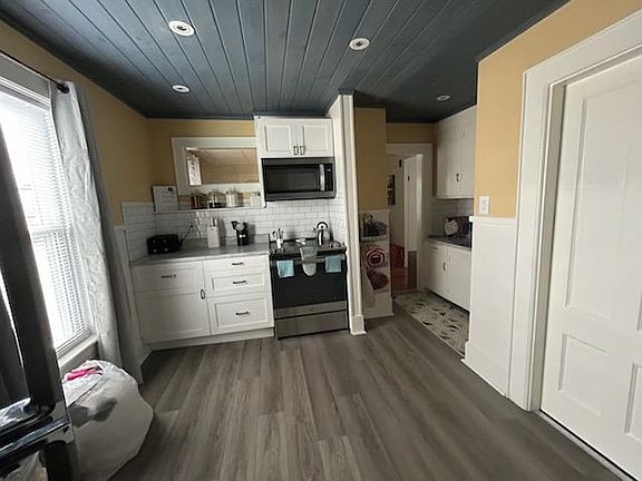 Railroad-style, recently remodeled apartment with freshly painted walls with new appliances, windows, carpets, and a new kitchen and bathroom. A railroad style means you need to walk through one bedroom to get to the other. Great commuter location with off-street parking and highway access nearby. In-building washer and dryers available. One cat considered for a 25/mo fee. No smoking. Renter pays for Electric and Heat. Credit and criminal background check performed.