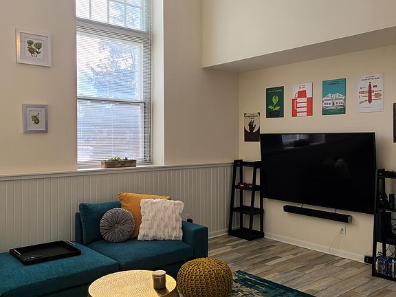 Completely renovated and in a well-maintained historic building with secure entrance/callboxes, indoor central mail area, fitness center, indoor/outdoor common areas, covered parking & much more! Within walking distance of all of Mechanicsburg boro restaurants and businesses. Features marble countertops, 14-foot ceilings, high-end brushed nickel light fixtures, and gorgeous Fanimation fans. This unit has 7 total 8-foot windows for lots of natural light. Full-size washer/dryer and all stainless steel appliances. Smart lights in 4 rooms so you can dim things from your phone or by using Alexa and Google technology. Lots of closet space. Both FIOS and Xfinity are cable/internet options. 675 minimum credit score, verified employment, and references required. Water/sewer/trash + HOA fee ($250) included in rent. No Smoking and no pets. Application, credit check, background check, and employment/income verification required. 1st month's rent + full month security deposit required for move-in. Tenant must purchase renter's insurance.