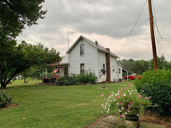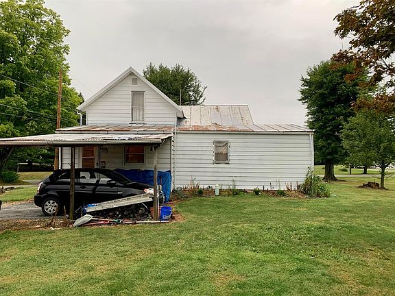 Feel right at home! Edge of town living with 1/2 an acre! Fabulous back yard w/ 2 storage sheds. Mature trees. One car carport and off street parking. Large rear entry/mud room/laundry room and washer/dryer is included! Kitchen provides tons of cabinet space. Living room and formal dining room. 1st floor Bedroom. Spacious Bathroom. Large bedroom up (could possibly become 2). Nice covered front porch. City Amenities. Furnace/Central air/Duct Work new in 2012. Basement has had updates including new block walls, concrete floor, concrete steps, new drains and sump pump. New sub floor in kitchen in 2009. Some new electrical wiring & outlets. Home is in need of some updating. Easy access to I-71/SR 61 exit. Delco water, Columbia Gas.