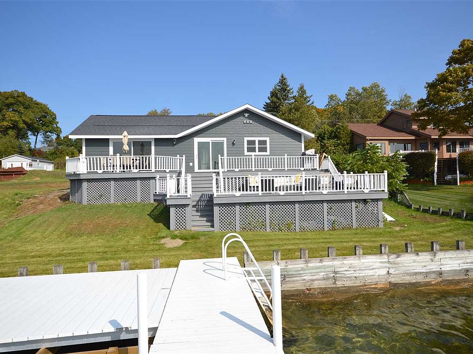 When opportunity knocks, you better be ready! This fabulous 3 bed, 2.5 bath home is perched at the waters edge overlooking the tranquil waters of beautiful Lake Charlevoix. Starting from bare studs to the finished product. All New--Electric--Plumbing-- HVAC---Insulation--- Drywall-- Flooring--- Roof and More. Marble tile in Bathrooms---Quartzite Counters in Kitchen. ITS BASICLY A BRAND NEW HOME!!!! You will find yourself melting into relaxation as you set with the libation of your choice on your expansive deck taking in all the beauty the location affords. Your afternoons and weekends will have untold memories of tossing cornhole bags at the waters edge, or better yet jumping into the crystal clear waters of the beautiful lake and enjoying a swim! There will always be memories to be made at your home on the lake! The open floor plan allows for lots of fun entertaining as your guests will be right there with you, be it in the comfy living area, or just outside on that large welcoming deck. The bedrooms are all large and welcoming, you have a full basement for lots of great storage of all those water toys and games you will accumulate living on the water, and then there is the 2 plus car garage offering a safe harbor from any rainy days. All in all, this a turn key tight package, and ready to start living your dream! Every inch of this house has been restored to current standards.