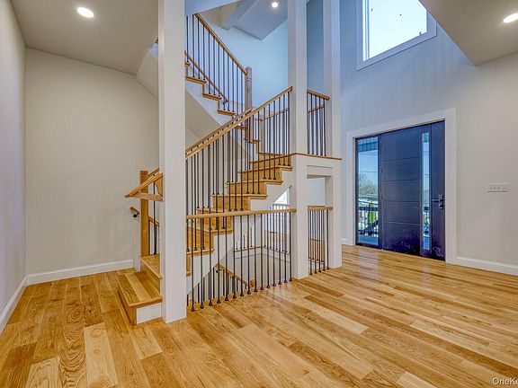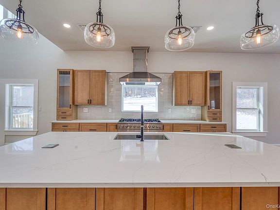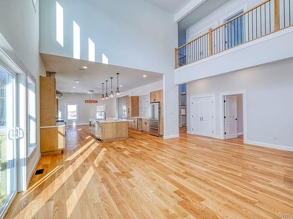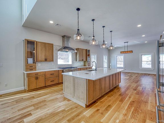 Just 60 minutes from New York City, this newly completed custom Colonial offers an exceptional blend of luxury, privacy, and natural beauty, set on a peaceful property with year-round views of Mombasha Lake and CLOSELY bordering protected state land—ensuring natural surroundings, and quiet sophistication.Designed for elevated living and entertaining, the residence features 4/5 bedrooms, 3 full baths, and a rare SIX-CAR GARAGE with dramatic 18-foot ceiling with gas line installed--ideal for car collectors, creativity, or luxury storage. An extensive covered outdoor porch and walls with oversized windows bring the outdoors in, bathing the home in natural light and stunning lake views. The MAIN LEVEL offers 10-FOOT CEILINGS and an artfully designed GREAT ROOOM with a soaring 20-FOOT CEILING, massive STONE WOOD-BURNING FIREPLACE and seamless indoor-outdoor flow. Anchoring the home is a CUSTOM WHITE OAK AND SATIN IRON STAIRCASE SPANING FOUR LEVELS, a dramatic architectural statement that rises gracefully through the space and sets the tone for the home’s refined design and craftsmanship. The chef-caliber kitchen is a statement piece, featuring a 5x10-FOOT QUARTZ ISLAND, custom cabinetry, 48-INCH PROFESSIONAL EIGHT BURNER DOUBLE-OVEN RANGE, STAINLESS STEEL APPLIANCES, and a built-in wine cooler—perfect for both intimate dinners and large-scale entertaining. The formal dining room, elegant living room, full bath, and a flexible den or private office (optional fifth bedroom) offer versatility for guests, work, or multigenerational living. A full bath completes the main level.