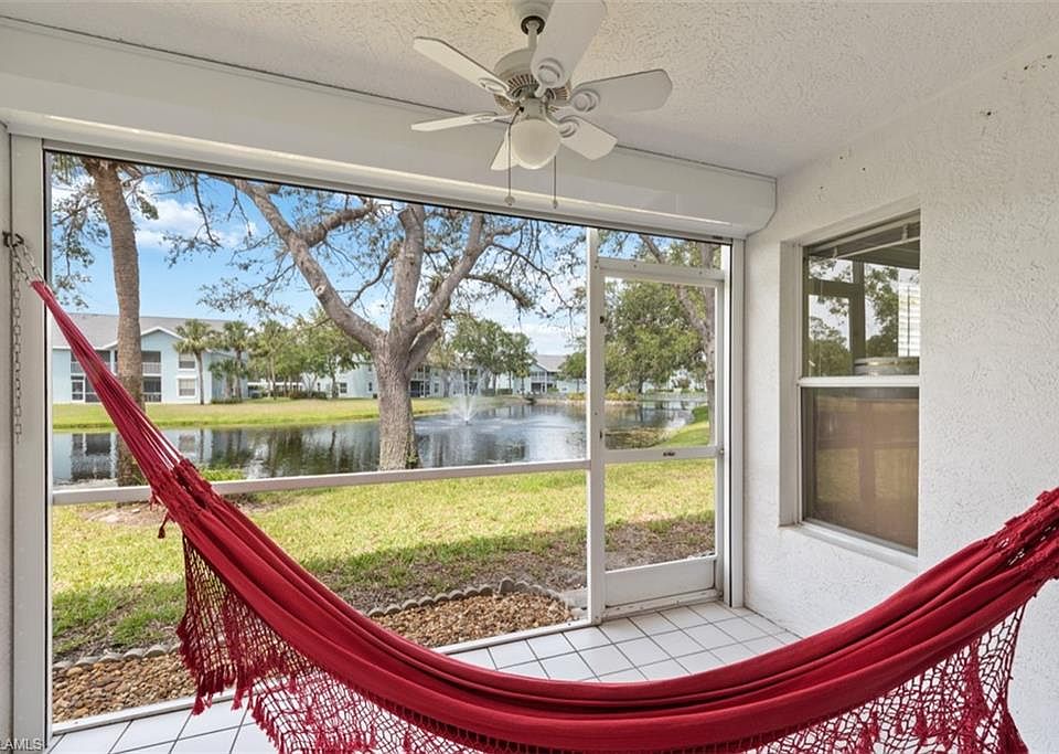 PET-FRIENDLY COMMUNITY, freshly painted! Looking for a beautiful first-floor condo unit in an amazing location in Naples? Look no further than this stunning 2-bedroom, 2-bathroom, plus a CARPORT right in front of the condo. AC was installed in 2015 and NEW water heater 2023. As you step inside this beautiful condo unit, you'll be greeted by tile floors throughout and an abundance of natural light. With a beautiful view of the lake and fountain, the perfect place to relax and unwind after a long day. This condo unit is a great opportunity, whether you're looking for a starter home, investment property, or vacation home. LOW HOA fees and an affordable maintenance fee. The condo is protected with electric STORM SHUTTERS!! Enjoy the many amenities this complex has to offer, including two pools, a community room, covered parking, and carport space. The complex is very well-maintained, with a newer roof, freshly painted buildings, and recently resurfaced roads. Located close to shops, the Mercato, Seed to Table restaurant, hospital, Sam's Club, and beautiful beaches, this condo is perfectly situated for your every need. Don't miss out on this amazing opportunity to own your dream in Naples!