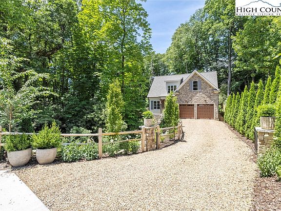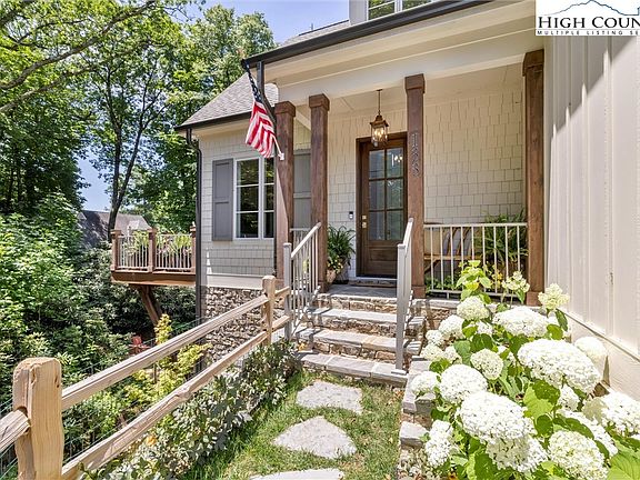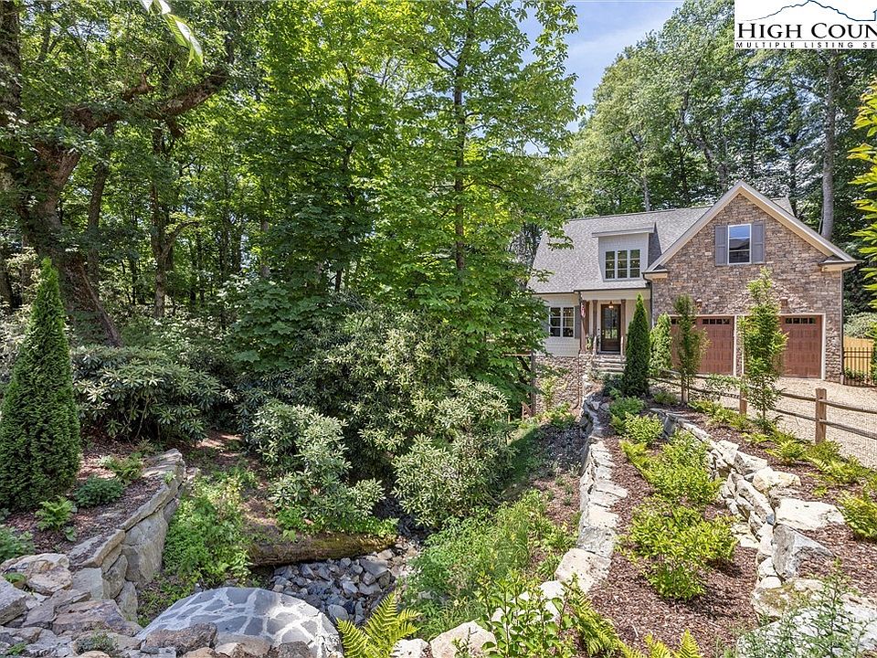 Elegant newly constructed mountain cottage just steps to Main Street Blowing Rock! Step into the two-story entryway through the extensively landscaped entrance with boulder walls and beautiful natural stone accents. The main level features a chef's kitchen, a great room with a soaring stone fireplace with a live edge wood mantle, a separate formal dining room, and sliding glass doors out to the private deck. Peer over at the gentle creek, carefully stacked boulder walls, and stone firepit nestled in the rhododendrons. The master bedroom is located on the main level with an accented wood tray ceiling and features a spacious bath with double vanities, a soaking tub, and a walk-in tile shower. Three guest bedrooms are found upstairs along with two beautiful tile baths. There is a finished bonus room over the garage that would be a perfect office, bunk, or exercise room. Attached is a two-car garage, with additional parking for guests in the driveway. Recently finished in 2022, this cottage has thoughtful touches throughout including white oak floors, large moldings, and 10-foot ceilings on the main level. The peaceful storybook setting nestled in the mature trees can not be beaten with just steps to Main Street restaurants, dining, and all that Blowing Rock has to offer. The taxes listed are for the lot only and will be updated to include the house in August 2024.