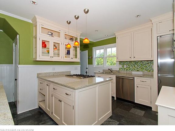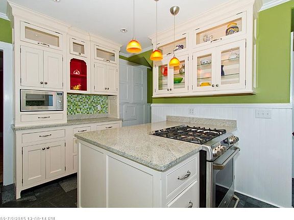 Quintessential Maine at its best! Beautifully done Farmhouse on a large, breathtakingly landscaped lot w/Megunticook River frontage. Many updates including a beautiful, well thought out kitchen and two outstanding baths with gorgeous tile work and large, state-of-the-art, walk-in shower. Lots of natural light, wood floors, architectural charm & many original features intact. Nostalgic enclosed front porch with sliding windows and attached barn/garage. Incredible gardens, w/a field that slopes down to River.