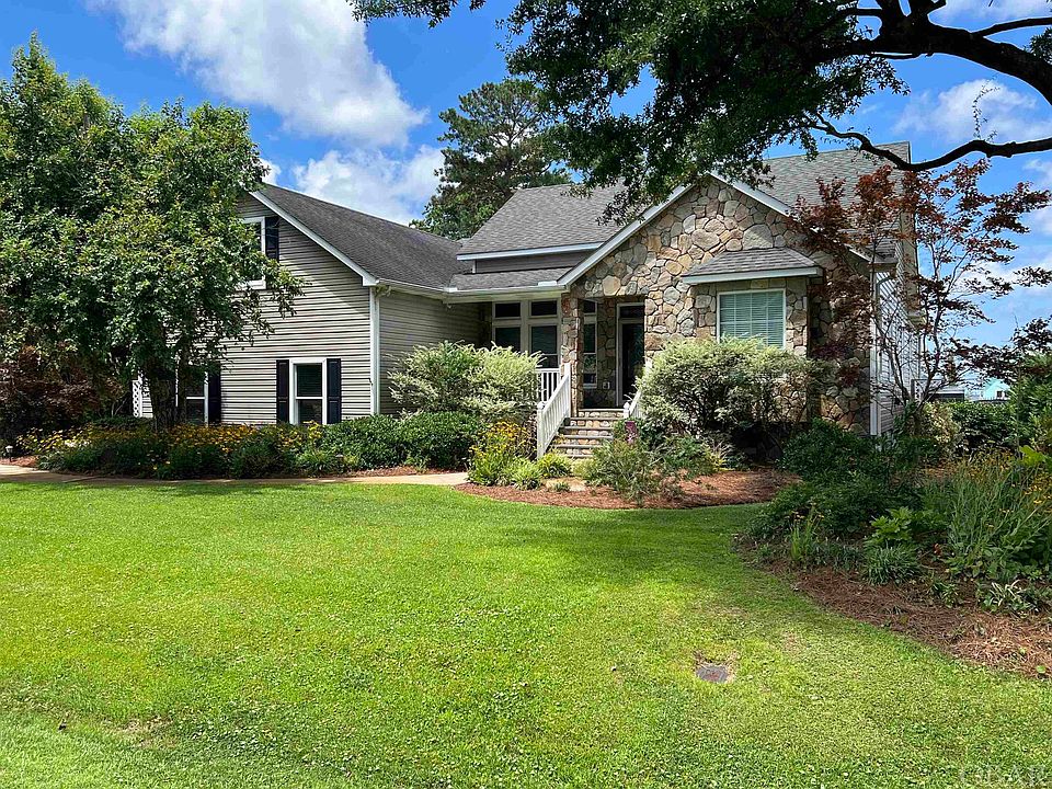 This 4 bedroom home has everything you need. Located in a private boating community on a large lot. You can enjoy all the amenities which include a boat slip, boat ramp, sound front pier, tennis courts and gazebo for watching the sunsets in the evening. if you just want to hang around the house, the salt water pool is a good start or sit on the back deck or sun room. All 4 bedrooms and 3 baths are located on the first floor. The living room and dining area features a cathedral ceiling, fireplace and cherry wood floors. Plenty of room in the kitchen for entertaining and features granite counter tops, appliances and a separate eating area. If you like to exercise there is a finished room over the garage which could also be used as an exercise, office or game room. The garage is big enough to hold the car and a golf cart which is popular in this neighborhood for driving around. The sunroom over looks the pool area and the back yard. Other amenities include gas hot water heater, 8 zone irrigation system and security cameras. Hop on your bike and ride to Manteo on the bike path or just take a long walk around the neighborhood on the private roads. This home on the north end of Roanoke Island is waiting for you.