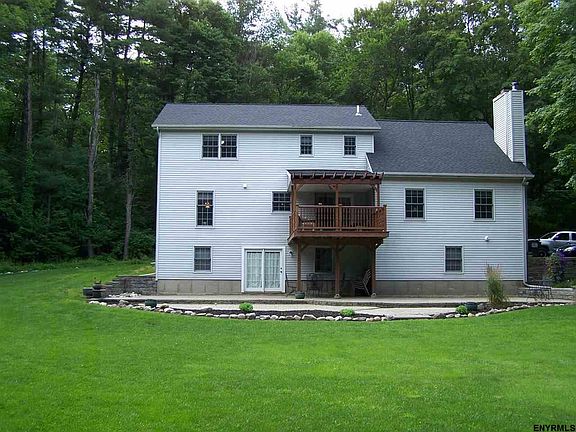Beautiful Colonial on almost 7 acres. Private yet close to I90, I787, and downtown Albany. Excellent condition inside and out. Upper deck & lower patio. 2 sheds. Immaculate hardwood floors. In-law apartment in the walkout basement. 2 car garage. Beautiful yard with walking trails through the woods. 2 year old roof, 4 year old heating and A/C units. Awesome kitchen. Perfect house for entertaining a large crowd or just your personal sanctuary. Peaceful and tranquil. East Greenbush Schools.