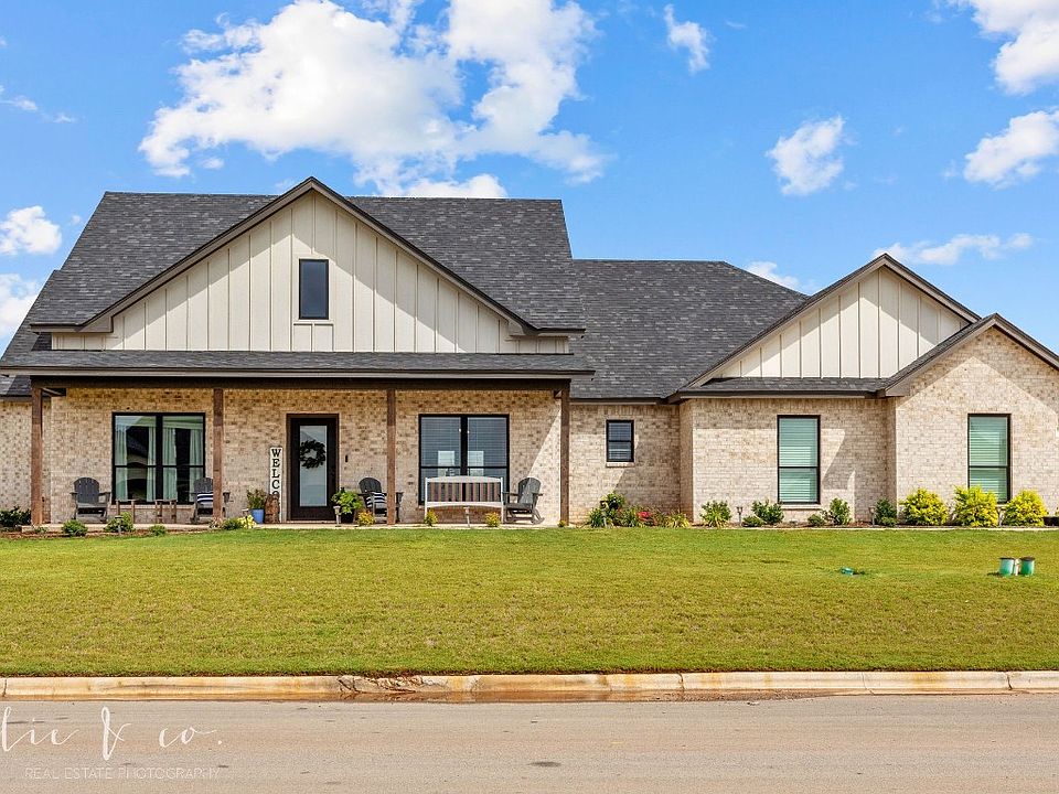 Wilson Built Homes built in 2022, Jim Ned ISD and a 4 bedroom 2.5 bath home on a half acre lot. The home has a split bedroom floor plan and an open concept living and kitchen area. Complete with a chef's kitchen and a masterfully designed pantry, you will look forward to all of your cooking and gathering events. Primary suite includes dual sinks, tiled shower and soaking tub with a fabulous walk in closet. Fully fenced, irrigated, landscaped, and completely ready to move in and start enjoying.