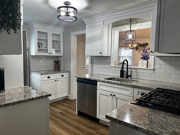 HIGHEST ND BEST BY WEDNESDAY 4/34 AT 7:00 PM. Welcome to this enchanting cape! Step into the stunning shaker white kitchen, boasting luxurious soft-close upgrades, with newer stainless steel appliances, exquisite granite countertops, and charming glass-front cabinets. The dining room embodies the latest trends, showcasing elegant shiplap walls and a soaring vaulted ceiling! Indulge in the timeless ambiance of the bathroom, adorned with vintage-inspired porcelain tile and a pristine white subway bath surround. This delightful abode boasts two spacious first-floor bedrooms, an expansive upstairs bedroom complete with his and her closets, and a cozy tandem bedroom or home office. Revel in the allure of all-newer, tastefully appointed lighting fixtures! With a roof that's only 12 years old, newer vinyl replacement windows.Outside, the fully fenced yard offers privacy and tranquility, while the finished room in the bsmt provides additional versatile space.