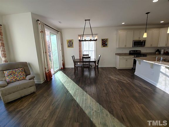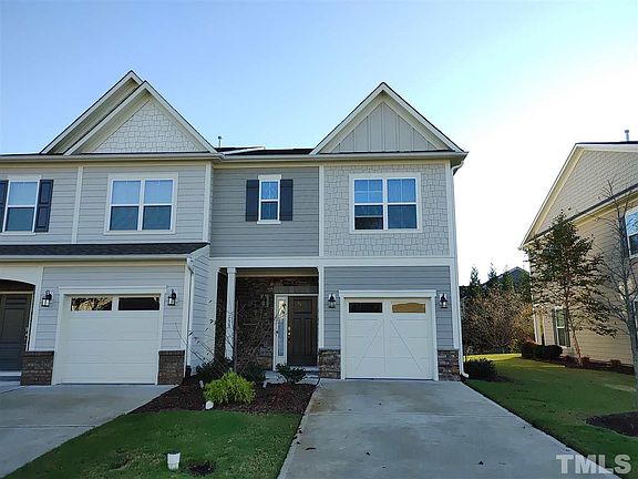 Like new end-unit townhome in sought-after Woodcreek. 3BR/2.5BA & 1-car garage. Open floor plan. Hardwoods on 1st floor. Upgraded cabinets throughout. Kitchen w/ granite counter top, island, and SS appliances. Master bedroom w/ trey ceiling, large walk-in closet, and in-suite bathroom. Extra exterior and attic storage. Community amenities include clubhouse, pool, water slide, lazy river, fitness center, tennis courts, basketball court and playground. Very convenient to 540, NC 55, shopping, and parks.