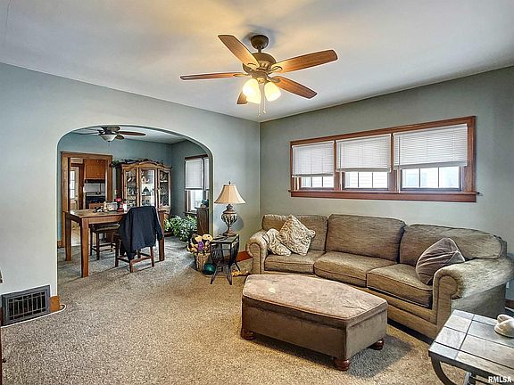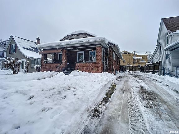 Explore the appeal of this charming 2-bed, 2-bath bungalow nestled in the heart of Moline. This brick home welcomes you with excellent curb appeal, featuring a well-manicured lawn & an inviting front porch. Inside, take in the spacious living room & formal dining room adorned with arched doorways, charming wood-trimmed windows, & comfortable carpeting. The kitchen has stainless steel appliances & ample cabinets. Two large bedrooms & a full bath on the main floor offer comfortable living. The spacious attic opens up possibilities for additional storage space. Discover the basement, home to the laundry room, a second full bath, & 2 partially finished spaces that could be finished to potentially serve as non-conforming bedrooms or additional living space. Outside, a very large fenced backyard with a storage shed & a cozy back porch await, perfect for outdoor enjoyment. Located near local schools, parks, & restaurants, & within easy access to Interstate 74, this charming brick bungalow is ready for you to make it your own. Don't miss out on the opportunity to call it home!
