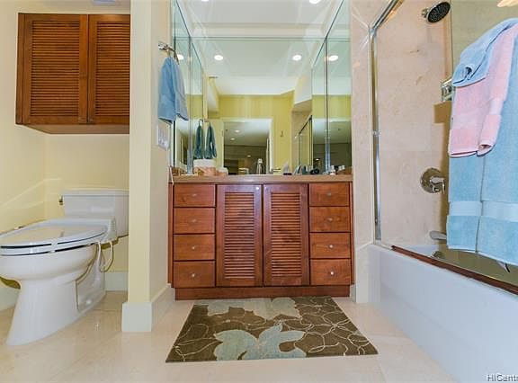 Direct ocean views that stretch throughout the unit. Marble and real hardwood floors throughout the condo. Bosch appliances, Sub Zero refrigerator, special granite countertops, and Toto toilets. Electronic shades, floor to ceiling drapes in the bedrooms, romantic lighting, and custom furniture from CS Wo. Great location in Kaka'ako, near Ala Moana Shopping Centre, Whole Foods, Ala Moana Beach Park, restaurants and shops throughout the area. LARGE Swimming Pool, Tennis Courts, world class lobby, and plenty of guest parking!