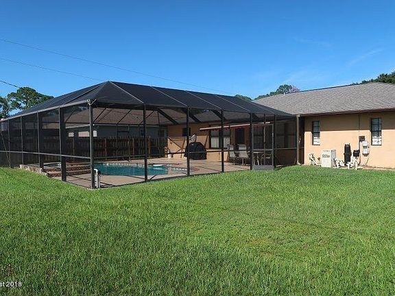 Beautiful 4/2/2 Custom POOL Home! Completely renovated in 2009, new roof compliant with year 2000 hurricane codes, new Trane A/C, plus many upgrades.Centrally located in the heart of NE Palm Bay. Walking distance to the Hammock Landings, home has City Water and a custom kitchen,Tumble marble stone counter top and back splash. Large 18''''x18'''' tile throughout the living area, carpet in bedrooms, walk in closet in the master is built out. Large family room, perfect for entertaining.Large screen pool complete with overhead awning, heated spa, waterfall, in pool table with water bench seating. Large privacy fenced yard, over sized 2-car garage and more!ID 446717