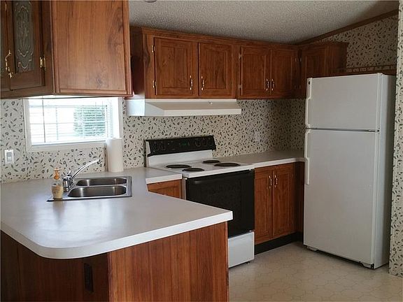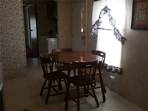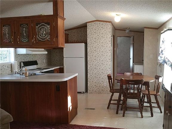 Nicely maintained two bedroom singlewide mobile home situated on almost an acre of land with public water and sewer. Vaulted ceilings, appliances included, dual pane windows and central air. Two car detached garage with storage above. Front porch and nice yard. Vinyl siding and shingled roof.