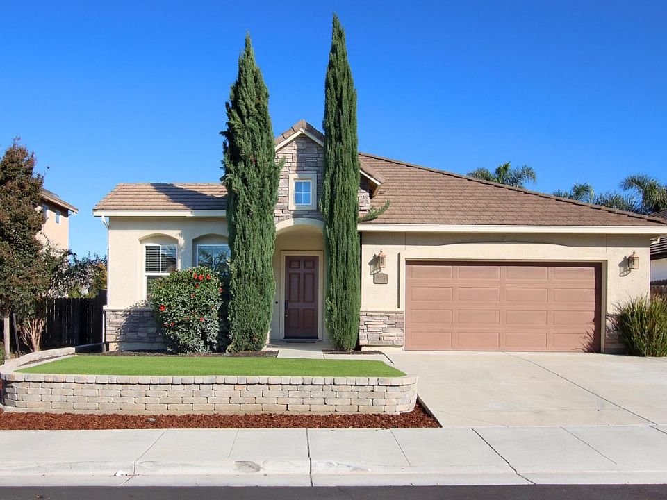 The Bold and the Beautiful Brigantino! California style single level living in a home that shows like new! One of the most desirable Hollister neighborhoods, walking in you are greeted by high ceilings, and impressive open kitchen for the real cook at heart. Stainless appliances starting with built in oven, microwave and gas cooktop, Granite chefs Island outfitted with sink and dishwasher, and space to dine and chat informally at the bar. Opening into living room area with gorgeous gas log fireplace, and views to the back yard. First bedroom faces the front yard and neighborhood, which also doubles as a terrific office or study area. Private main suite features a corner soaking tub with window lookin out to the private back yard. Large walk in shower with full glass enclosure, spacious counter with dual sinks of course. Low maintenance yard with synthetic turf, and plenty of patio area to entertain and barbecue. Walking distance from Marguerite Maze middle school, and easy commuter access to highway 25 and Fairview Ave. Just five minutes from downtown and all of the great treasures of Hollister. All of that and a two car garage of course! Close and convenient to everything, while being just far enough from the hustle and bustle. Country living without the high maintenance!