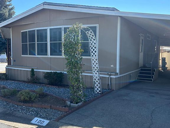 Cute 2 bedroom, 2 bath mobile home located in Oak Shadows Mobile Home Park, a 55+ community. At 1008 sq.ft., this thoughtfully laid out floorplan features 2 Bedrooms with very spacious walk in closets and 2 full bathrooms. There is a galley style kitchen with separate dining area and built in hutch. Sunburst Ovation Wood Shutters throughout, enclosed sunroom, covered front porch and carport, and 2 storage sheds. Low maintenance landscape on corner lot. Mobile home re-leveled in 2022, with roof, kitchen hood, garbage disposal, and swamp cooler being replaced over the last couple of years. The park offers immaculate grounds that include a large swimming pool and picnic area as well as a club house and full kitchen for parties, exercise facility and small library. In addition, park is centrally located and just minutes away from senior center, government center, hospital and shopping. Park approval REQUIRED. Some flooring will need replacement, sold as. Seller will entertain all offers!