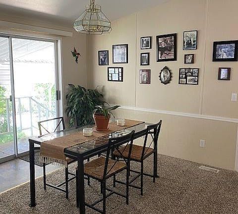 Well maintained newer mfg home in 55+ community. 2 br, 2 bath plus reading room, sewing room or ? Comfortable living room opens to the dining room with slider. Covered carport includes extended awning. Kitchen features pull out drawers, eat in nook, refrigerator washer & dryer included. Large master bedroom has walk in closet. Master bath includes a step in shower, makeup vanity and grab bars. Second bedroom recently painted. Second bath has shower over tub. Privacy screens on all windows. Handicap ramp to front door. Metal roof installed in 2016. Fenced back yard, with storage shed. Located in Oak Shadows MHP. a 55_ community that includes community pool, clubhouse, BBQ area and so much more! This home is a must see! You won't be disappointed.