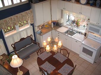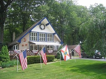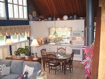 Superb Chalet Living W/ Lake Views and Walk to beach! Immaculate condition. Ready to move in. Excellent location walking distance to town yet tranquil and private, not an associationGreat lot with 280 foot frontage and just under one acre. Large 750 SF Deck.Inside cedar with an updated kitchen-granite counters new ceramic backsplash. Large kitchen open area into living room with large airy high ceilings that go up to the master bedroom from the stairs with two separate bedrooms on the main floor with updated bath.Second Floor large bedroom.Convenient separate washer and dryer closet off kitchen.Gas electric heat and fireplace for practical heating.Vinyl siding. Downstairs 5 foot basement. 2 sheds. Updated ceramic flooring in kitchen and shower/bath.Great for entertaining with a large deck and 18 foot retractable awning.Don't forget to notice the charming plantation shutters for an appealing European charm look.Can come furnished.Low taxes.