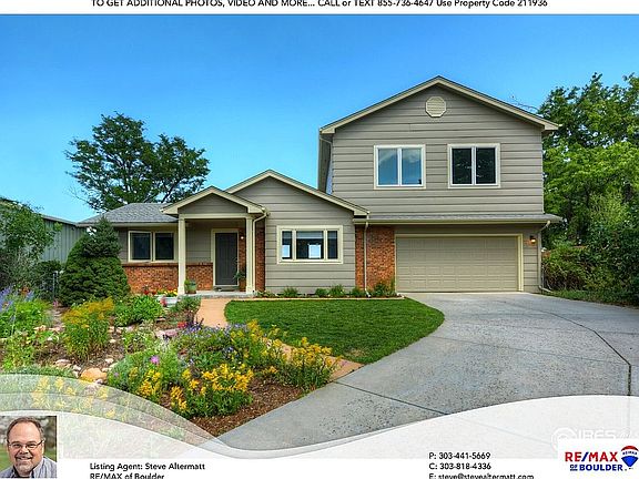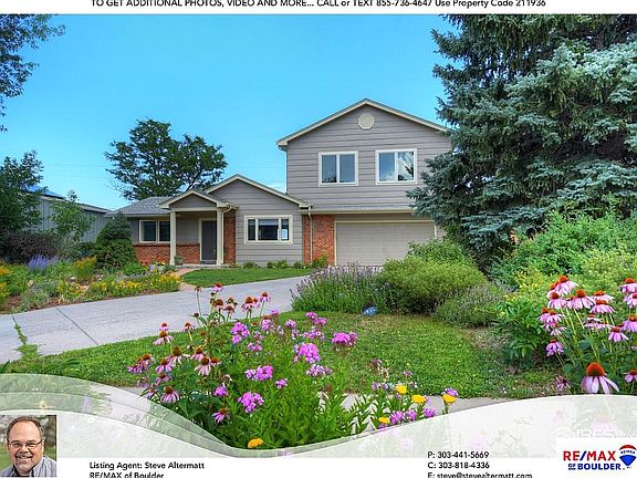 **TO GET ADDITIONAL PHOTOS, VIDEO AND MORE... CALL or TEXT 855-736-4647 Use Property Code 211936** Call Listing Agent for more info 303-441-5669* Light, open and updated two story home backs to the 308 acre CU South property with amazing views of the Flatirons, Bear Peak, plains and city lights, and hiking & biking trails right from your door! Serene and luxurious two story with privacy and views rarely found in town. Large, open kitchen features slab granite counters, hardwood floors, a breakfast bar and ss appliances. Awesome, open family room and dining room with expansive views of Davidson Mesa and wide, open spaces. Master suite has a luxurious five piece bath, a big walk-in closet, and excellent sunrise views over the plains. Finished basement with large rec-room, a great guestroom, and a full bath. Freshly painted inside and out and refinished hardwood floors throughout the main floor! Located on a beautifully landscaped lot with raised bed gardens and a wonderful patio. From this quiet South Boulder location you can walk or bike to the Table Mesa Center with it's excellent restaurants, brew pub, and coffee shop.