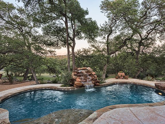 Own your own slice of Hill Country heaven! This property is nothing short of spectacular and it is perfectly complimented by the high-end custom home with pool and wonderful equestrian facilities with Barnmaster-like stalls, arena and trails. The home perfectly takes advantage of the views and gorgeous sunsets. Finished out to perfection, the home features a great room with 2-story tall ceiling to allow for walls of windows, a stunning fireplace that is the heart of the room and features you won't find anywhere else. The chef's kitchen offers a massive center island and granite from South America. Impressive master that is located downstairs plus there are 4 more bedrooms, one is a true guest suite with kitchenette. Relaxing outdoors spaces with wrap-around porches & resort-worthy pool with waterfall. This Ag Exempt property is gated and features 15.65 beautiful, rolling acres with wet weather creek and fields of wildflowers. Wimberley ISD accepts transfers, please inquire if desired.