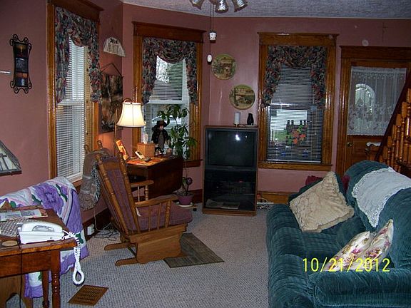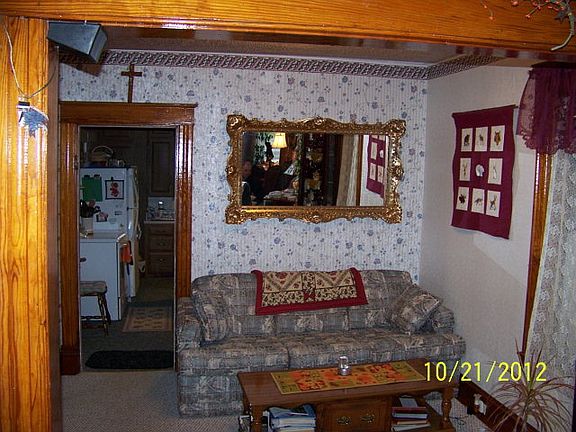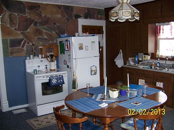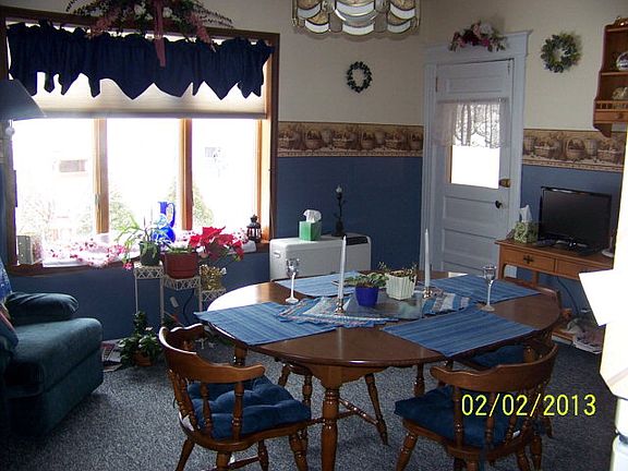 Very well maintained home located on a side road. Has a large enclosed porch on the front with vinyl replacement windows. Master bedroom on the main level. Large eat in kitchen with numerous cabinets. There's original woodwork throughout. The upstairs has wood floors and a large sitting area. Could be closed off during the winter. The large detached garage has work shop and storage on the second story. Exterior was painted in 2012. Foam insulation was sprayed on the basement walls.