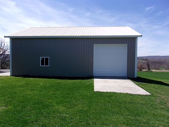 HOME & COMMERCIAL WORKSHOP. Enjoy the Majestic Valley Views from the front porch of this Custom Design & Stick Built Brick Front 1586 sq ft Ranch Home. A Craftsman's Dream sits just out back, 2400 sq ft Modern Workshop, Four Large High Bay Doors 10 x 10, Concrete Aprons, Office Space. Ideal for Woodworking, Metal Fabrication. The Home features Three bedrooms, Two full baths, LR, DR, Eat in Kitchen, Island, Washer and Dryer Nook, full Solid Oak 3/4 cut Hardwood Floors, Copper Tubing throughout. Oil Furnace with Base Board Heat, or Wood Stove ready. Full Basement,High Ceilings, Bomb Shelter/Root Cellar, Underground Utilities, Fully Insulated Two Car Garage. Zoned Commercial.Total Taxes after Exemption are $4365.