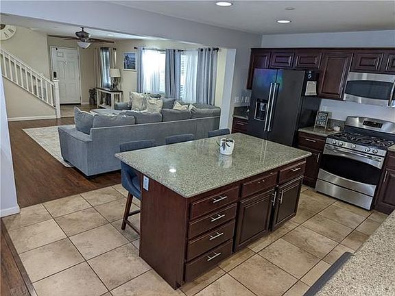 This lovely home is turnkey ready with some recent upgrades. The backyard is perfect for entertaining guest with a new patio, concrete and turf recently installed, have made the back yard easy to maintain. This home has an open concept with kitchen and living room providing the perfect setting to entertain guest inside as well. The kitchen has an oversized island, granite counter tops, cherry wood cabinets, stainless steel appliances and recess lighting. There is a guest bedroom located downstairs with a bathroom right around the corner. As you make your way upstairs the stairs and hallway are well lit with natural lighting. There are two spacious rooms upstairs that share a full restroom and just down from the upstairs laundry room. The Master bedroom is located at the end of the hallway, it has a separate shower and bath tub with a large walk-in closet. The master has a beautiful view of the neighborhood and the mountains in the distance.
