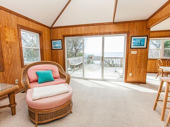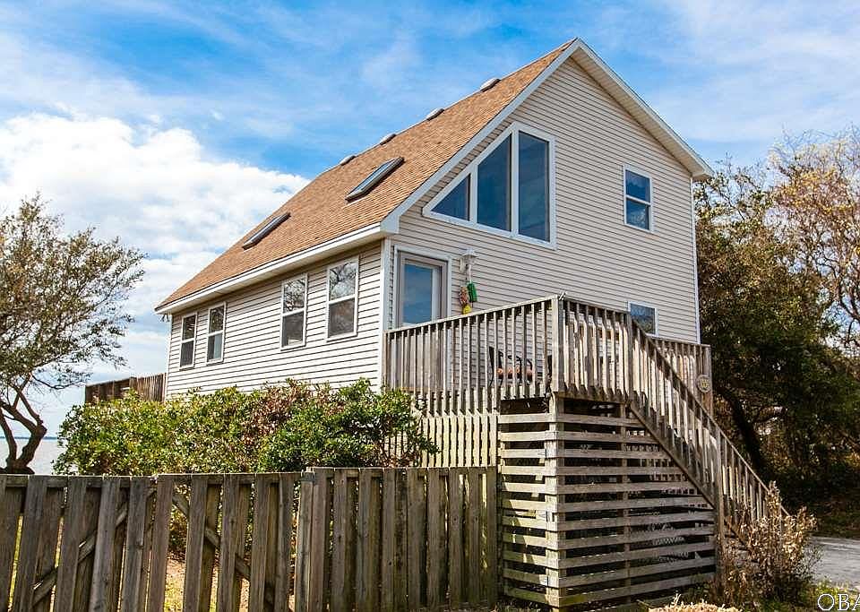 This rustic cottage is nestled away on a private soundfront parcel (nearly ½ acre) with stunning water views and within close proximity to shopping, dining, and recreation in the Town of Duck. Great elevation, this home is located in an "X FLOOD ZONE" so no flood insurance required. Additionally, this property features a fenced in back yard for your 4-legged friends, irrigation system and 70' of water frontage (bulk-headed). You can fish or crab from your own private pier/boardwalk which also features a seating area and stairs down to water. At the ground level there is a covered parking, utility room with washer/dryer and outside shower. The first floor features the great room w/cathedral ceilings, dining area, kitchen, queen bedroom and full bath. The second floor features two additional bedrooms (one with private balcony overlooking the sound) and share bath. While the current owner has kept this home off the rental market for their own private use, this home would make an excellent vacation rental should you choose to offset the cost of ownership. Very private and an ideal location for those water sport enthusiast in the family.