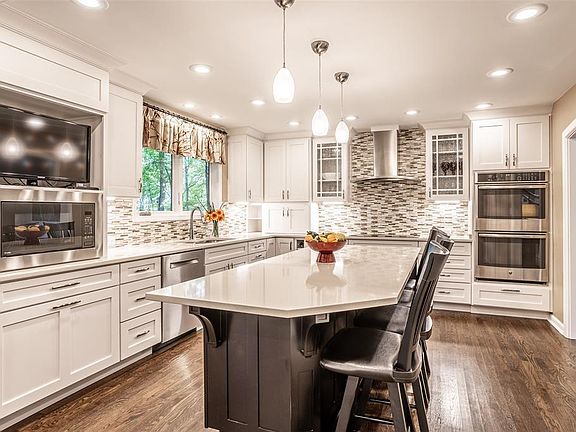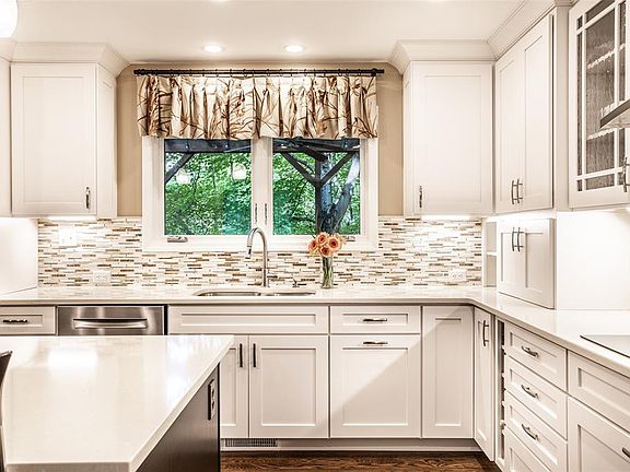 Private wooded lot on cul-de-sac, house features new kitchen w/quartz countertops, large island, ample cabinetry for storage and pantry space. Main floor boasts guest suite with built in desk space for alternate office space use, large family room with stacked stone, wood burning fireplace, large 3 season room & sunken living room providing space for large gatherings. Owners ensuite w/updated bath features custom cabinetry & granite countertops. The LL w/theater with built-in cabinetry & bar seating w/granite tops, woodworking shop & large area for workout space, walks out to outdoor space overlooking wooded lot/creek/treehouse. Main level deck provides multiple spaces for entertaining/dining. Renovated storage shed. Serene, must see spot!