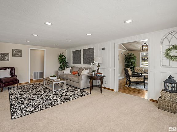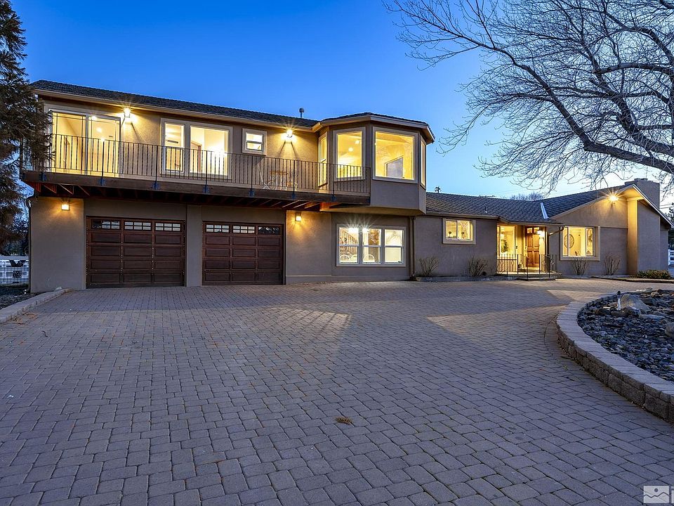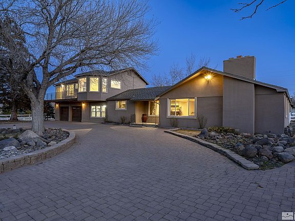 Beautiful City and Mountain Views! This updated Equestrian Ranchette is in a prime Reno location and includes 4 bedrooms, (one master suite and one ensuite on main level) three baths and a two-car garage on 1.3 acres. Complete with 200 x 120 +/- riding arena, six horse shelters with water and electricity, vinyl fencing, Outwest tack building built in 2021. A 600 +/- sf out building is included in the total square footage; ideal for an office or potential in-law quarters. The west side of the property is perfect for trailer and RV parking and includes full hookups for an RV. The perimeter of the property is fully fenced with three rail PVC horse fencing (with hot wire); the back yard is further fenced for household pets. The property has grass front and back yards, patio, mature trees, gated circular paver driveway and a glorious panoramic view that spans downtown Reno to Sparks that completes the appeal of this equestrian property. The property has been recently updated and refreshed to include: all bathrooms, flooring/carpet, light fixtures/can, fresh paint, a new kitchen hood and more. Shows beautiful. Please visit the virtual tour for more photos.