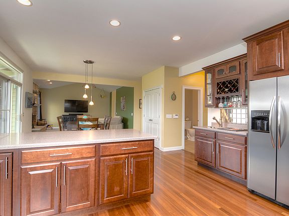 Amazing quality custom built ranch home in Hampshire Hills. Beautiful spacious gourmet kitchen w/cherry cabinets, SS appliances, Brazilian cherry floors, under cabinet lighting, great for entertaining. Sliders lead to refinished large deck with beautiful views landscaped yard and sunsets. Living rm w/ brick fireplace, crown molding, vaulted ceilings. Recently updated Master suite w/walk-in closet, luxury bathroom w/double vanity, whirlpool & 2 person master walk-in shower. Hall bathroom w/whirlpool jets. Laundry room on main floor w/utility tub. Finished walk-out basement w/10' ceilings, bedroom/office, rec. room w/custom cherry trim fireplace, Brand new carpeting. Plumbing set up for possible wet-bar/kit., full bathroom w/custom shower, large storage area, sliders leading to patio. Possible great in-law arrangement. 3 car heated garage w/ceiling fan & 220 volt, and Floorguard floor. New furnace 2018.