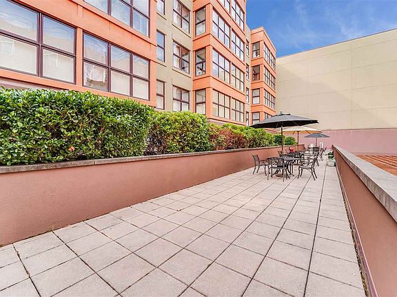 If Uptown luxury, convenience, outdoor space, and privacy is what you seek, look no further than residence 302 at the steel and concrete Condos at Cypress Point. Entering on 14th and Clinton Street, you feel the boutique chic privacy of a small building with a complete gym and garage parking with bike storage, as you take the elevator up to your semi-private floor shared by only two units. Note the addition of storage in the hallway for an incredible use of space. Inside you'll find an open concept floor plan with a chef's kitchen for entertaining in style, completely upgraded to include quartz countertops, white shaker 42" cabinetry, a full sized pantry, & high end stainless steel appliances including a 48 bottle wine fridge. Down the hall, both bedrooms are tucked away for a great night's sleep or a quiet sanctuary for working from home with ample custom California closet storage. Both hotel spa-like bathrooms have been thoughtfully renovated to include 3 piece rain showers, subway tiling and new vanities. Rounding out this well appointed home are wide plank ebony hardwood floors & recessed lighting throughout, front loading laundry in-unit, chair and crown molding and the massive courtyard to relax on after a long day. Conveniently located off of Uptown Hoboken's vibrant 14th Street, directly behind Trader Joes, with incredible restaurants like Orale, Biergarten, Dino & Harry's, you have quick access to 495 and the Lincoln Tunnel. Coming soon is Hoboken's five acre, Northwest Resiliency Park, New Jersey's largest resiliency park balancing nature, culture and sports and an infrastructure to withhold storm rainwater giving Hoboken added peace of mind.