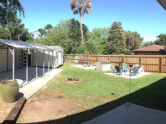Currently rented, renters have first right of refusal. ANY CALLS FROM REAL ESTATE AGENTS WILL CURRENTLY BE IGNORED. If you are a private buyer, please feel free to reach out. Available in May. 2/2 2007 home. Concrete block construction, with a hip roof. City water, Septic system. NO HOA, NO DEED RESTRICTIONS. In the front, extra wide driveway that can park three cars across. Two car garage with opener. Large front porch area. Back yard with privacy fencing. Screened in back porch that leads to a back concrete patio. Outdoor shower. Concrete pad that is covered by a carport, situated in front of a workshop (has power). Two other poured slabs in the back could be used for another workshop, BBQ, or fire pit area. Also includes irrigation well with outlets in the front and back. Inside, laminate wood floors in the living area, carpeted bedrooms, and tiled kitchen and bathrooms. security system. Large walk-in closet in master bath. washer dryer hook-ups in hallway. Updated 2020, new complete AC system replaced by Powell Heating and Air. Drain Field replaced by Moore’s sand a septic.