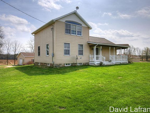 Beautifully remodeled in 2016 the Hawley farm is situated on 3.36 acres surrounded by 100s of acres of farm land for plenty of privacy. With a 68x40 pole barn and a 4 stall garage w a heated workshop, you have rooms for all your toys or animals. Inside you will find a wonderful kitchen, dining area and living room are perfect for everyday living along with room for entertaining guests. The upstairs master suite w full bath and additional bedroom are a great use of space. The main floor bedrooms and full bath(that rivals any spa) are all good size. The lower level is ready to be finished for an additional 500+ sq ft. All the baths and the kitchen offer granite countertops. Windows, furnace, AC, stainless appliances, softener, roof all new within the last 2 years. Come fall in love!