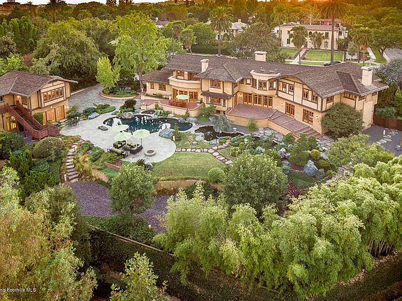ONE MILLION DOLLAR PRICE REDUCTION. CURRENT MILLS ACT STATUS REDUCES PROPERTY TAXES UNDER $20,000 PER YEAR. Named among the dozen most architecturally important Heritage Homes in Pasadena, the Freeman House in Pasadena's elegant Langham District is a magnificent example of English Arts and Crafts style. Over the last decade, recent owners have undertaken a multimillion-dollar restoration to return the landmark to its original beauty. The 1913 home was designed by Arthur and Alfred Heineman, among the most prolific architects of the California Arts and Crafts movement. Today, the impeccable restoration is reflected in every detail. Stone pathways wind through the nearly one-acre property, taking in views of the San Gabriel Mountains, an enchanting Japanese garden and a free-form pool, spa and Koi pond. Inside, glowing golden oak and African walnut are enhanced by rich period details. Highlights include a kitchen with top-of-the-line appliances and magnificent Craftsman cabinetry and a gorgeous Japanese-inspired guest house. Freeman House is both a masterwork of historic preservation and an incomparable setting for a lifetime legacy estate. Additional features include a 5 car garage, gym and wine cellar.