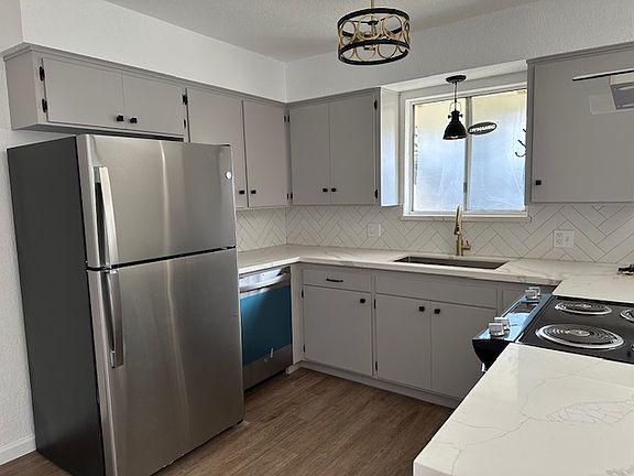 LOCATION, LOCATION, LOCATION Welcome to this beautiful, fully renovated residence, located steps away from the downtown area shops and restaurants. This residence, in the heart of Kingsburg, is in a quiet complex of 5 units total, which has just been fully repainted with a new roof installed. This is a ground floor 2 bedroom/1 bath residence, with no apartment above. Enjoy the convenience of this modern, high-quality residence, where every detail has been carefully designed for comfort and style. The spacious kitchen has been updated with quartz countertops, brand-new stainless-steel appliances, including a dishwasher and a new sink/faucet. The upgraded bathroom features double sinks and a tub/shower combo, and all new light fixtures, providing a serene space to relax and unwind. Throughout the residence, you'll find vinyl plank flooring, with a tiled bathroom floor that adds an extra touch of elegance. With a prime location, top-tier finishes, and an inviting atmosphere, this apartment is a rare find. Available for $1,670/month with a $1,000 security deposit, it is ready for move-in immediately. Don't miss out on the opportunity to call this amazing residence your home. Contact us today for more information regarding this renovated gem, the perfect blend of comfort and convenience! Owner pays for water/trash, tenant pays for electricity and natural gas