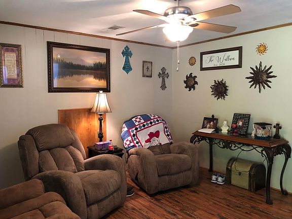 Cute 3 bedroom / 1 Bath home on 2 acres. Enjoy sitting on this amazing front porch and listening to the rain coming down on the metal roof. Close to town but with a country feel. Home was updated in 2012 with new windows, subfloors, central heat & air, wiring and kitchen cabinets. Storm Shelter located on the property.