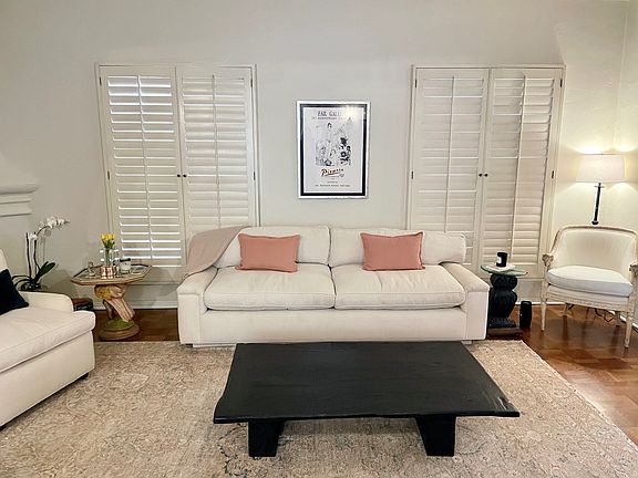 Apartment 106 has a distinct glamorous charm. Rich with historic detail, it's a strikingly handsome apartment. With wooden shuttered tall French windows, the living room and large master look right out on to the the beautiful courtyard. The wonderful chefs kitchen is open to the formal dining room (which also has French windows). The second bedroom makes a perfect office. The bathroom is light and attractive. Altogether, a very sexy apartment.
