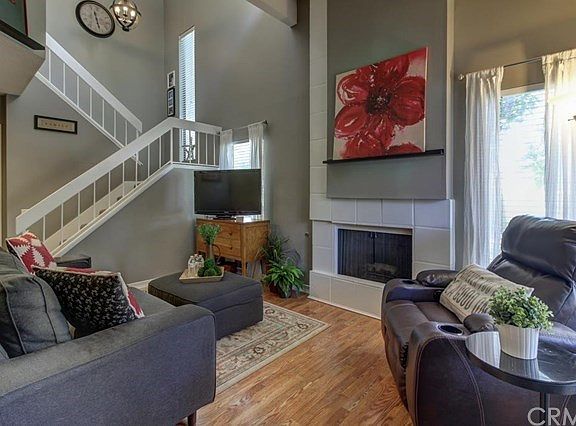 Lovely contemporary home features beautiful engineered wood flooring, slab granite counter tops, recessed lights, vaulted ceiling, and designer paint. You will be impressed and delighted by all this condo has to offer! From the cozy living room and upgraded kitchen to the spacious bedrooms upstairs, you won't find a better place in the community of Lakeview Townhomes. The attached 2 car garage has a laundry area and plenty of room for your extra items. This end unit provides additional privacy and views of the greenbelt while the front patio maintains an open space for outdoor entertaining and relaxing. With easy access to local schools, dining, shopping and freeways, you'll love living here. Come make it your home.