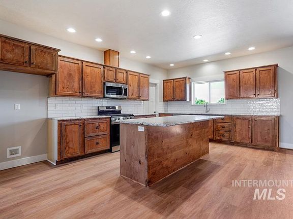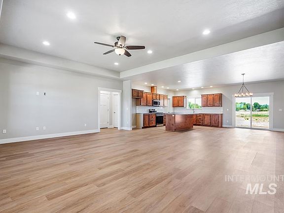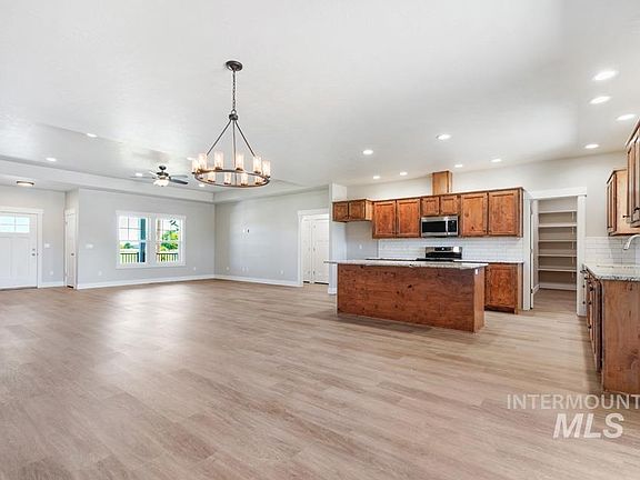 $699,900 This gorgeous custom newly built home sits on .43 acres on a quiet Fruitland street with no HOA/CCRs. Beautifully flowing floor plan is designed to maximize space & storage. With 9 ft ceilings throughout, this open concept makes entertaining a breeze. Easy to maintain Hardie board siding, interior has LVP flooring & neutral paint colors throughout. Kitchen features ample counter & cabinet space, beautiful custom knotty alder cabinetry, granite counter tops, full tiled backsplash. Large island for extra workspace & seating, stainless steel appliances including gas range plus a walk in butlers pantry. Master suite boasts tray ceiling, large walk in closet, dual vanities, & fully custom tiled walk in shower. 18x18 bonus room above garage would be great as a second living room or home office & features its own ductless heating/cooling system. Enjoy evenings on the front & back large covered porches, both great spaces to relax. Plus 3 car garage & large driveway with RV parking. Call for a showing today!