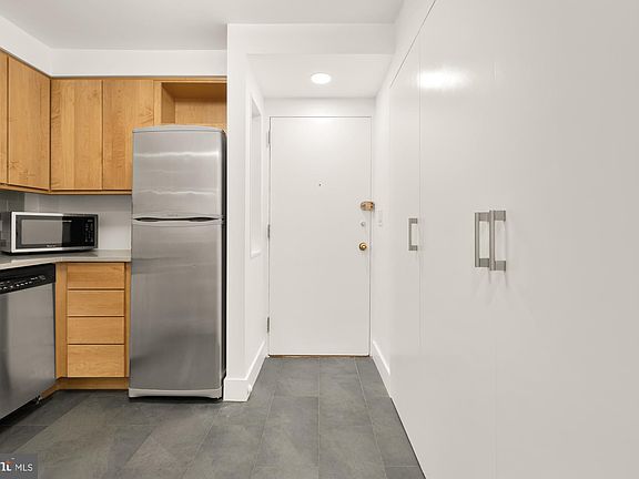 Welcome to urban elegance at its finest at the very popular Apolliné. With hardwood floors, space-saving pocket doors, and custom built-ins, this meticulously, architect-designed residence offers a seamless blend of modern sophistication and classic charm. Step inside to discover a beautifully renovated kitchen with quartz countertops and stainless steel appliances, including a gas stove, dishwasher, and refrigerator. A wall of closets line the entry hall, perfect for coats, pantry, and extra storage. Past the kitchen is a wonderful alcove, ideal for a living space or bedroom. The alcove has custom built-ins, perfect for extra storage, books, and displaying your treasures. The open living space provides both style and functionality. A wall of large windows frames picturesque views of New Hampshire Avenue and a lovely magnolia tree gives the feeling of living in the trees while letting the unit bathe in natural light. The condo boasts a spacious walk-through closet, ensuring ample storage for your wardrobe. Through the closet is the modern, updated bathroom. Residents of this building enjoy a range of amenities, including a large, deep, heated pool and a common roof deck, perfect for relaxation and entertainment. The building also features a common media/recreation room, laundry facilities, and is serviced by 24-hour front desk staff, ensuring a high level of comfort and security. With elevators for easy access, this condo offers the perfect blend of luxury and convenience in the heart of Washington, DC. Don't miss the opportunity to make this exquisite condo your new home. Live in the heart of the city, with Dupont Circle to the north, West End to the south, and the rest of the Nation's Capital easily accessible by foot or the close-by Metro.