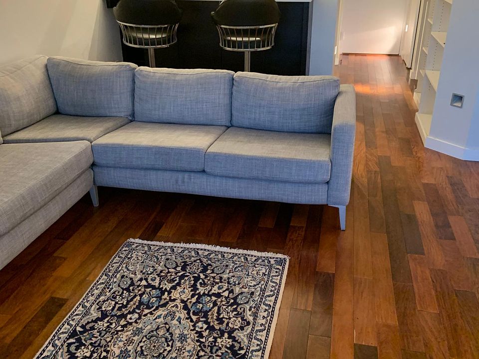 - Queen bed, L-unit sofa, desk, bar stools, coffee table